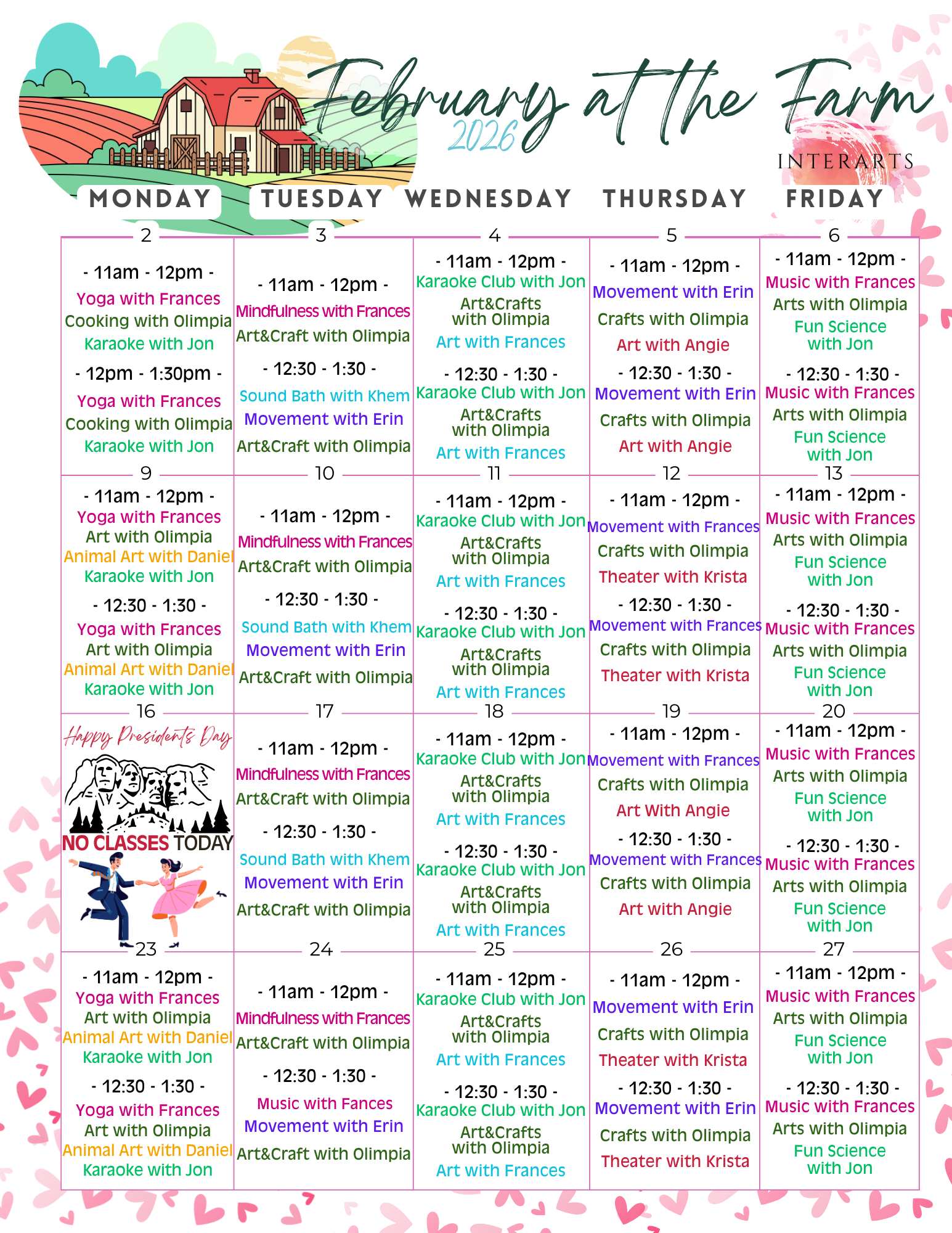 Monthly Assisted Class Calendar